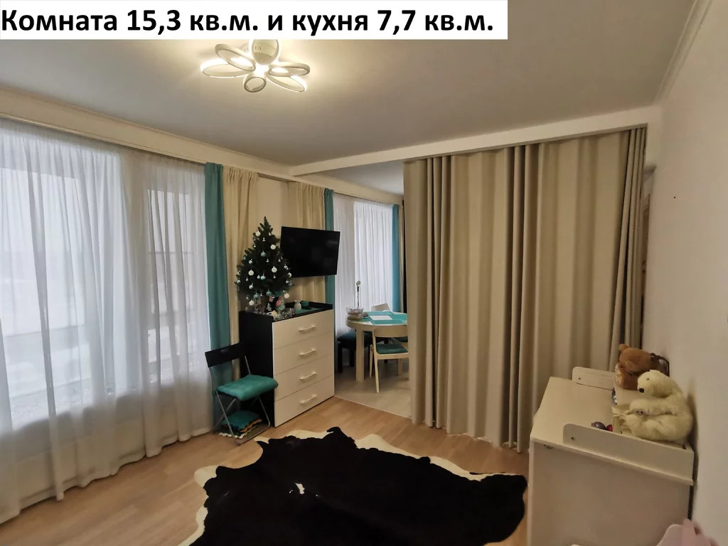 Гостиная 15,5 кв.м.(встроенная кровать немецкая, Guter M&246;bel с подъемным механизмом, ортопедический матрас в идеальном состоянии с усиленным контуром, не деформируется, покрытие на диване из моющейся ткани, кондиционер куплен в сентябре 2023 года, комод 4 ящика, немецкие карнизы, портьеры и тюль сшиты по индивидуальному заказу, люстра).